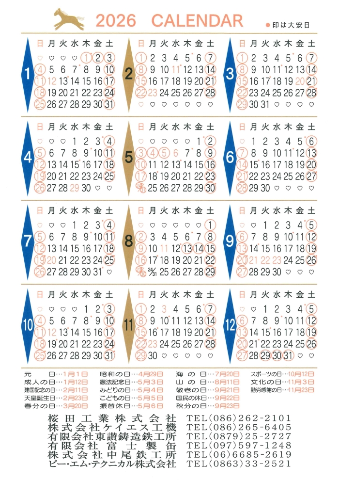 2026年 年間カレンダー